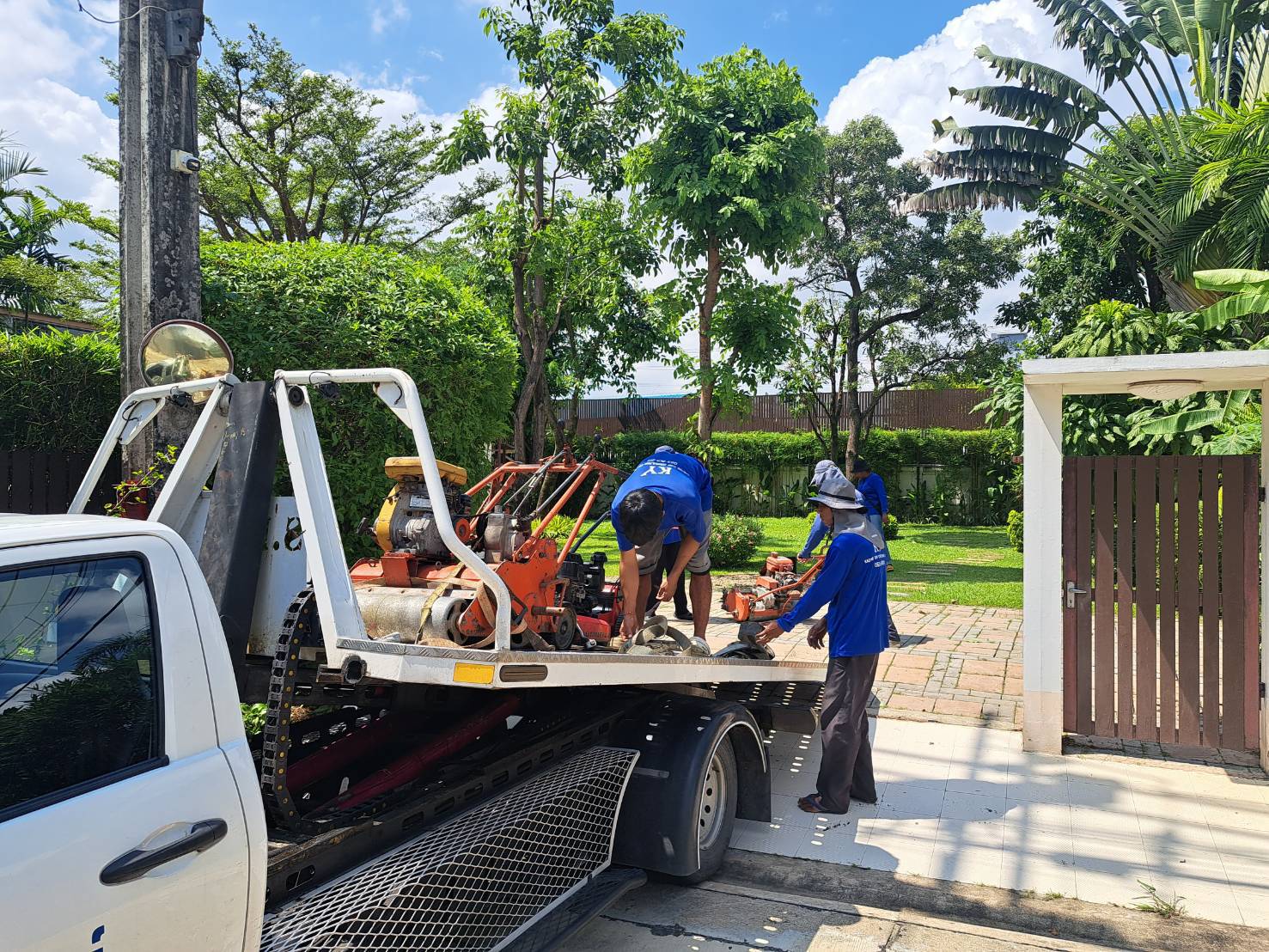 งานตัดหญ้าพร้อมดูดเศษสนามหญ้าบ้านลูกค้า ถ.ประชาชื่น ลูกค้าขอเนียนๆ สวยๆ ตัดให้ ด้วยรถตัดกรีนกันเลยค่าา