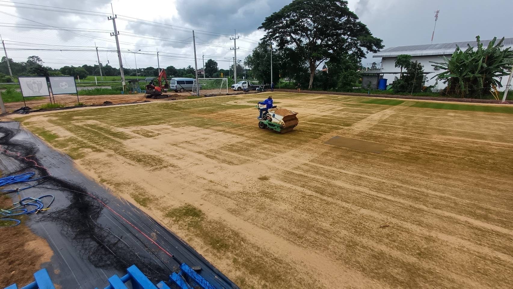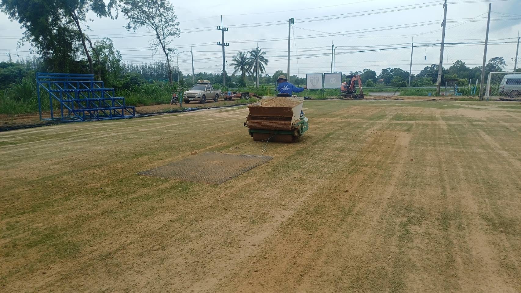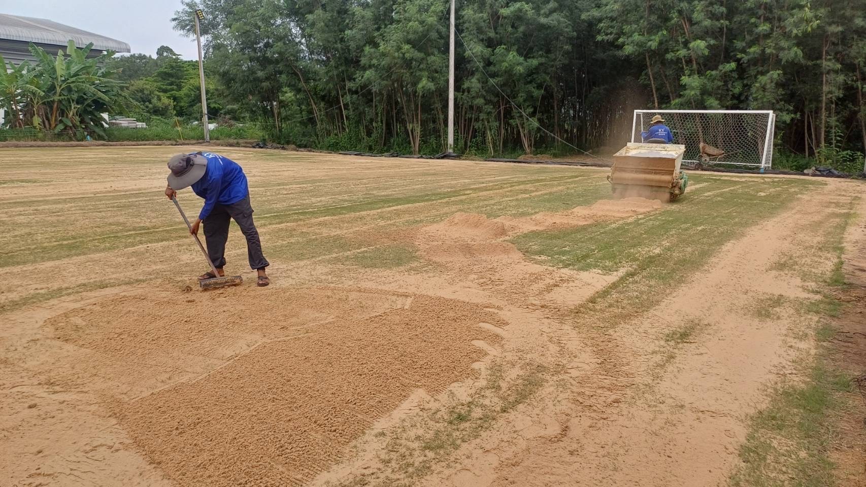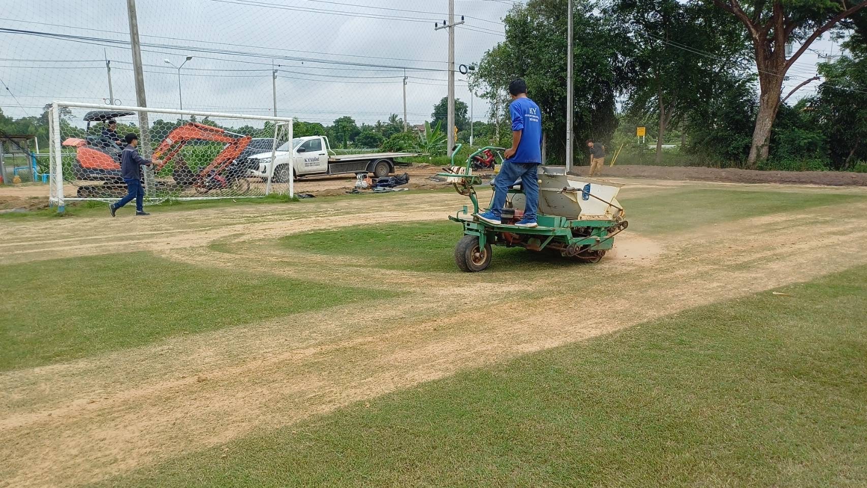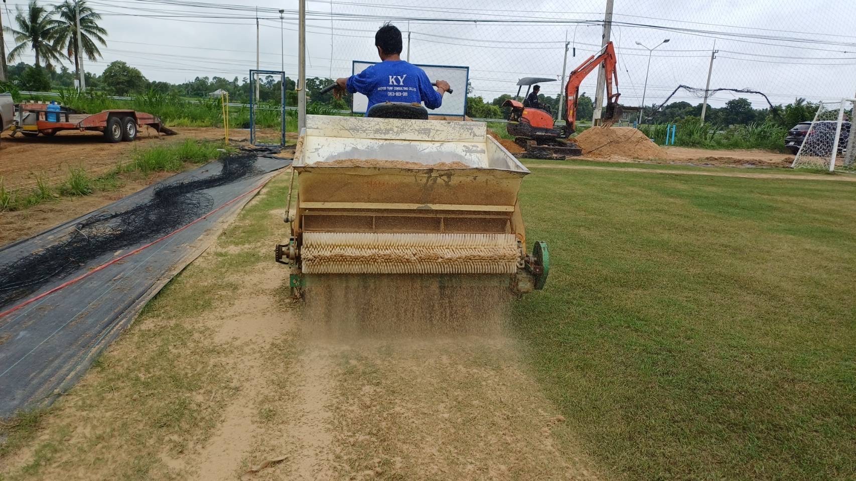 สนามฟุตบอล RDF กมลาไสย ตัดหญ้า ท้อปทราย ปรับจุดต่ำ