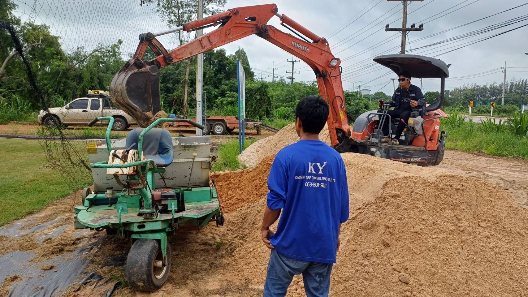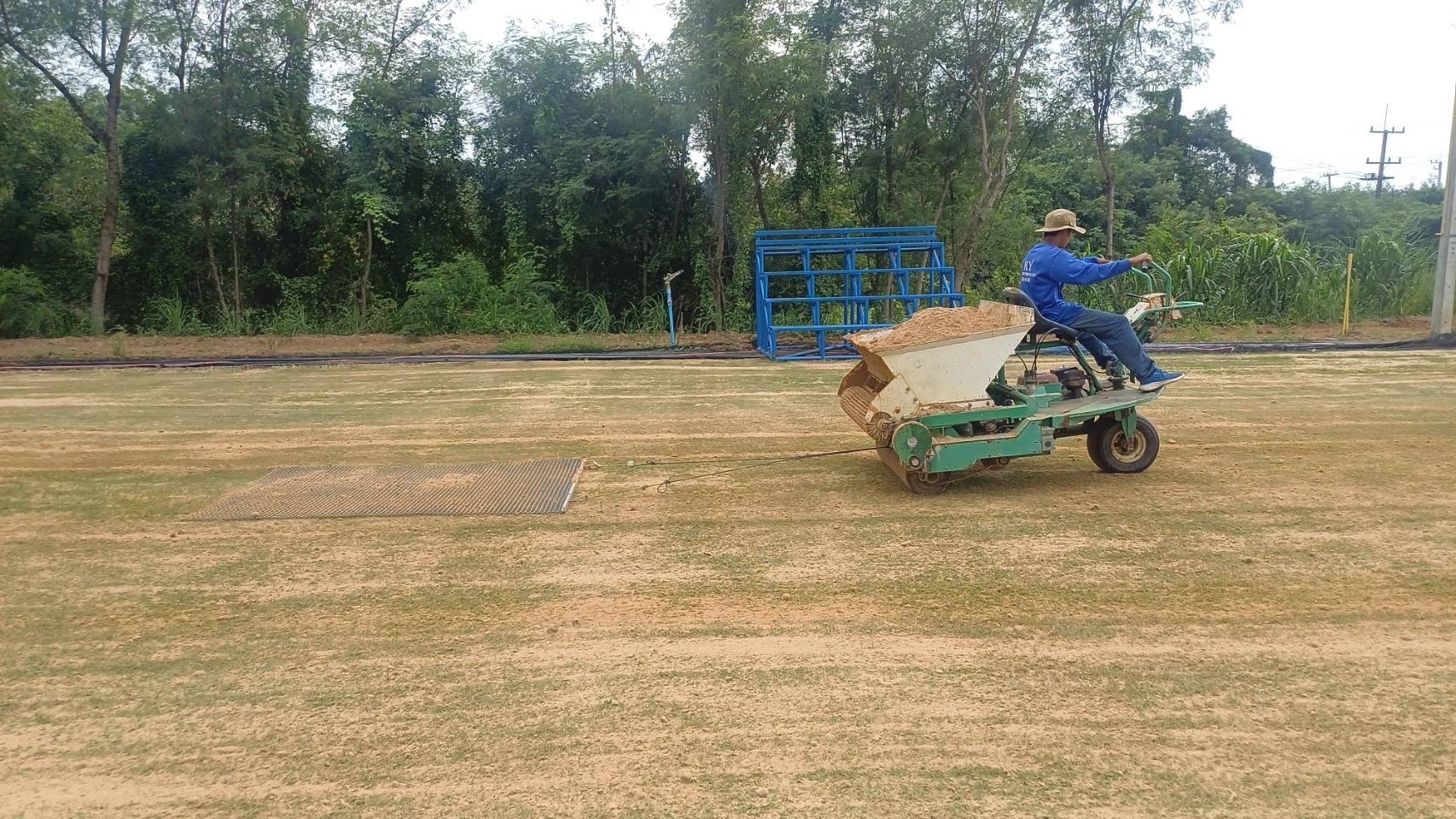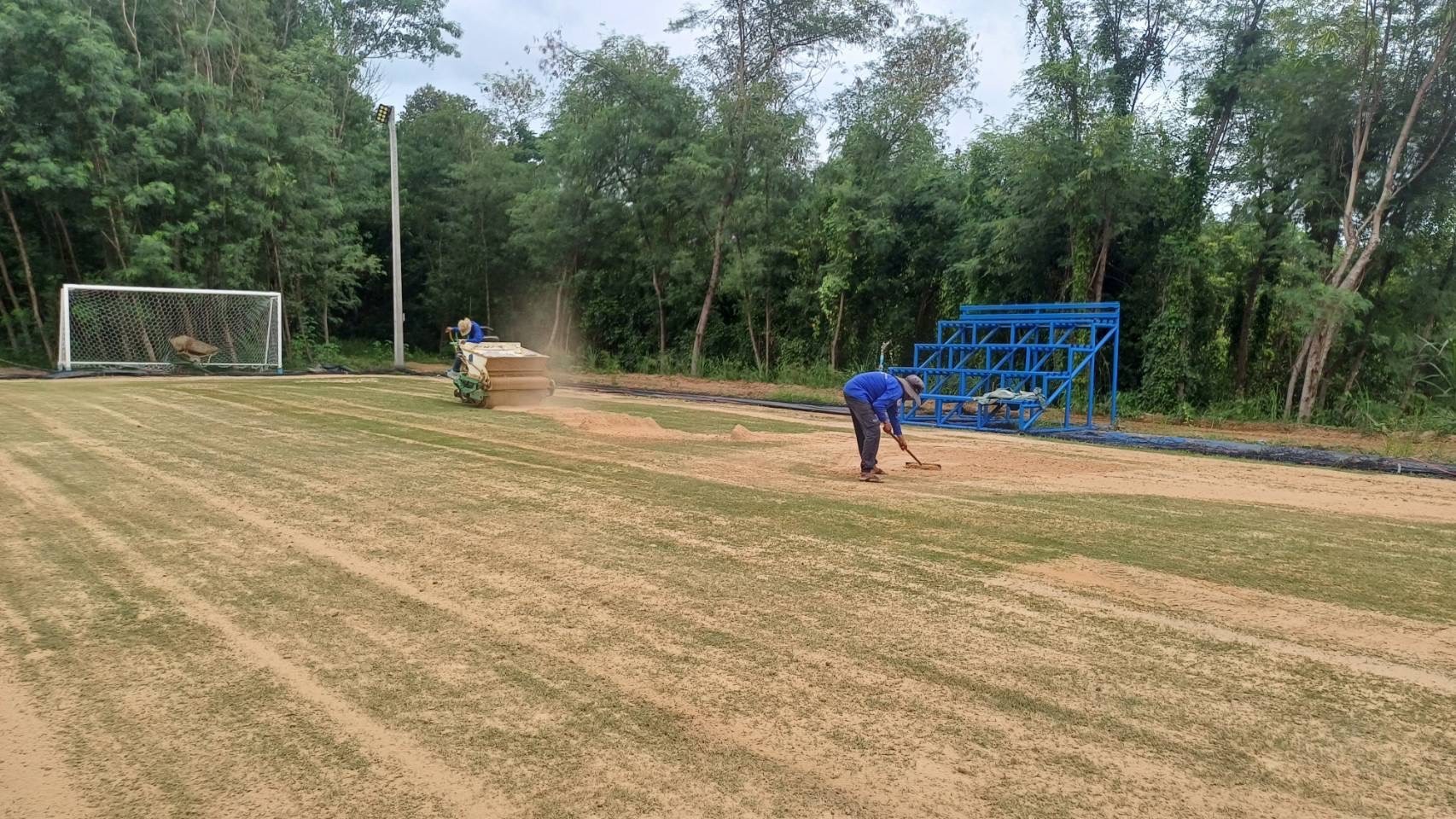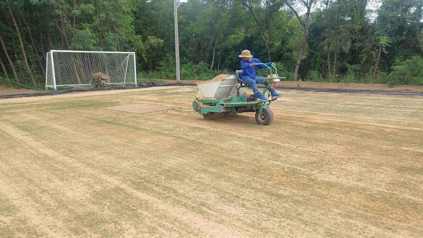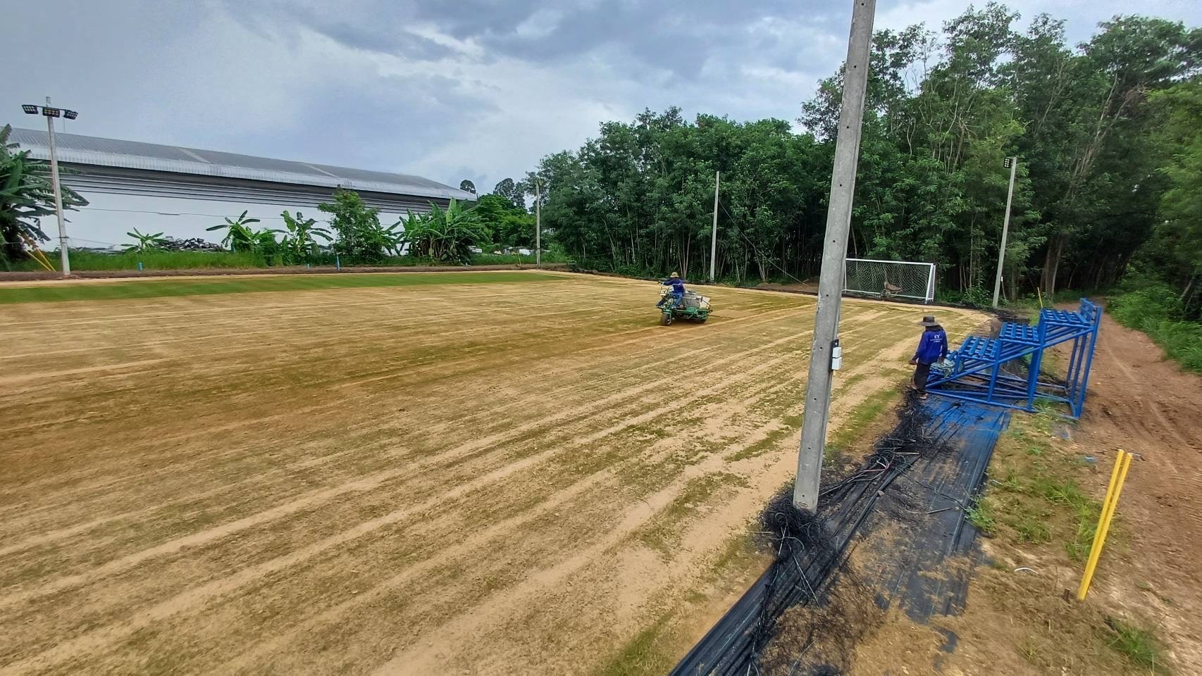 สนามฟุตบอล RDF กมลาไสย ตัดหญ้า ท้อปทราย ปรับจุดต่ำ